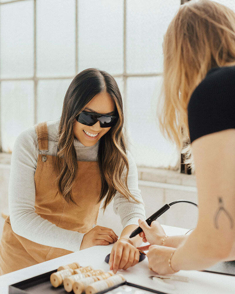 The process is simple! Pick out a chain from our 18K solid gold, 18k solid white gold, or sterling silver options displayed. Once you take a seat with our Spark Artist, the process takes anywhere from 5-10 minutes. We measure your wrist, finger, neck, or ankle for sizing. You can choose to add a charm if you want to make your piece even more unique and special. Finally step is we weld the chain to your hand, finger, ankle and check for any breakage before you leave